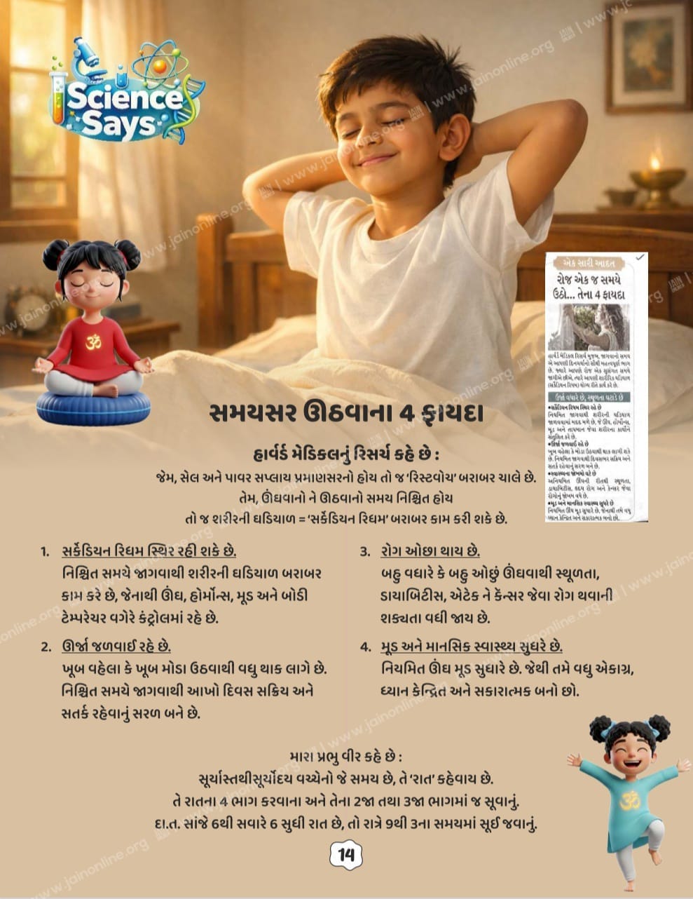 Science Says - ઊંઘવાનો ને ઊઠવાનો સમય નિશ્ચિત હોય તો જ શરીરની ઘડિયાળ = ‘સર્કેડિયન રિધમ’ બરાબર કામ કરી શકે છે.