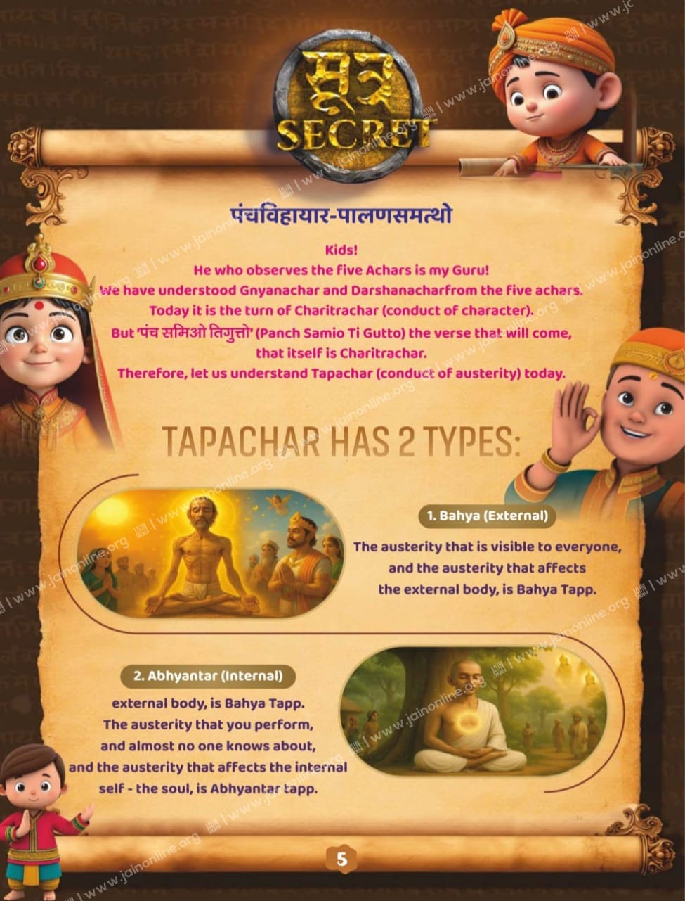 We have understood Gnyanachar and Darshanachar from the five achars. Today it is the turn of Charitrachar (conduct of character). But ‘पंच समिओ ति गुत्तो’ (Panch Samio Ti Gutto) the verse that will come, that itself is Charitrachar. Therefore, let us understand Tapachar (conduct of austerity) today.
